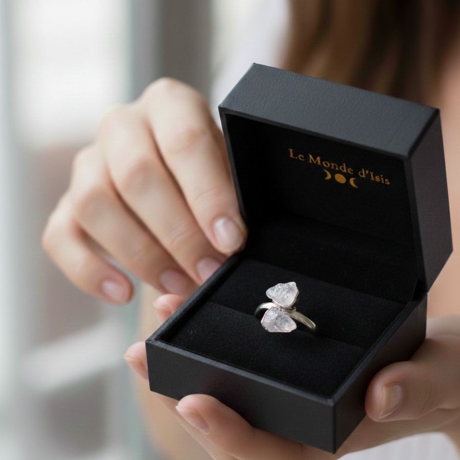 Livrée avec sa boîte élégante, cette bague est idéale comme cadeau symbolique ou comme bijou personnel de douceur intérieure.