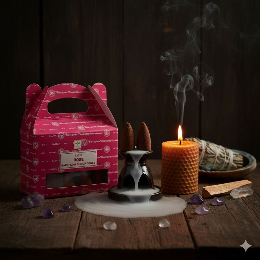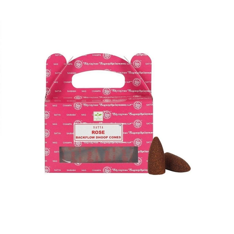 Les cônes backflow Satya Rose diffusent un parfum floral délicat et enveloppant, dédié à la paix du cœur, à l’amour et à l’harmonie émotionnelle.